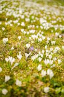 een weide met witte krokussen op de Hündle bij Oberstaufen