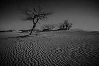 Zwart wit opname van eenzame boom in mooi duinlandschap.