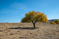 De eenzame boom die overleefd in de droogte en vervolgens een feestje viert door het tonen van zijn kleurenpracht gelijk een pauw.
