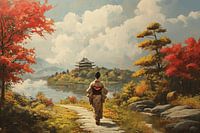 nou heeft dit beeld niets te maken met geisha's maar alles met elegantie en verstilde natuur in herfst kleuren.