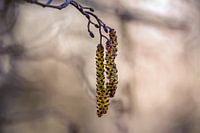 macro shot van de katjes van een elzenboom, met een 'marmeren' achtergrond
