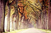 Koop de foto endless road in autumn.. van Els Fonteine als print op canvas, aluminium dibond, (ingelijste) fotoprint, behang en ArtFrame. Voor jou op maat geprint in Fine-Art kwaliteit.