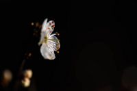 close up van een vroege witte bloesem in het zonlicht, geisoleerd met een zwarte achtergrond