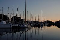 Een haven vol rustende zeilschepen in de avondzon, hoe fotogeniek moet het worden.