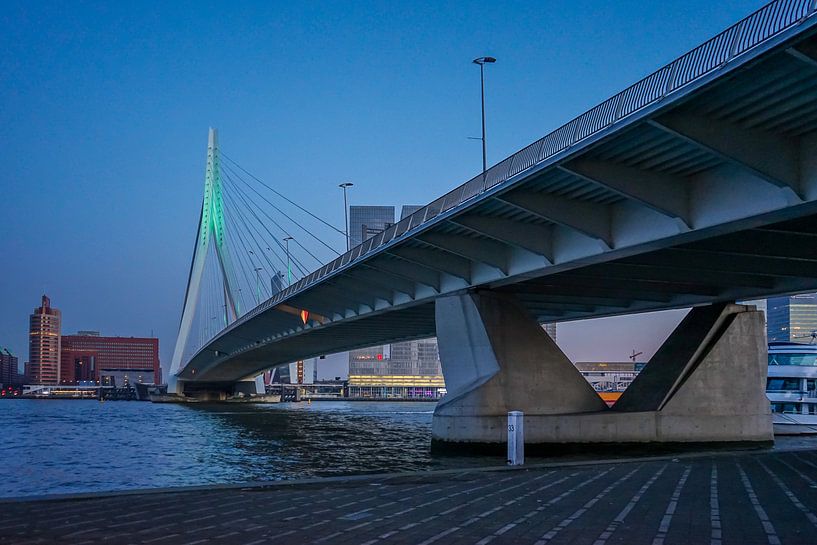 de erasmus brug tijdens het blauwe uurtje gefotografeerd, rotterdam is de mooiste stad van nederland