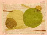 collage op stof van vloeipapier en gedroogde blaadjes