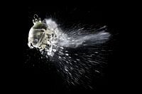Beeld is gemaakt in een verduisterde ruimte met behulp van een door geluid (knal van buks) aangestuurde flits-trigger, en 2 reportage-flitsers op de laagste stand, schuin achter het onderwerp. Dit zorgt voor een extreem korte belichtingstijd van zo'n 1/20.000 seconde. Door een 'delay' in te stellen op de flits-trigger van exact 28 milliseconden na de knal wordt de uit elkaar spattende kerstbal op precies het juiste moment belicht door beide flitsers.