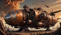 Een fantastisch vliegtuig is geland in een fantasielandschap