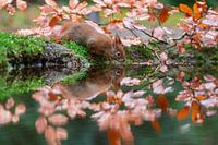 rode eekhoorn (Sciurus vulgaris) neemt een slokje water