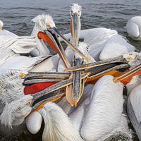 fight! Kroeskoppelikanen strijden om een vis. Mikado ;-) van Kris Hermans