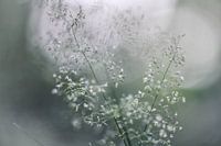 close up van heel fijn wild gras, wat in het bos groeit, met een grijze bokeh achtergrond