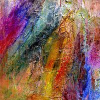 ...een spel met kleuren en materialen, jezelf laten drijven - leiden tot een subtiel spel van vormen, contrasten, vervormingen en structuren...scheuren en depressies tonen een spannend spectrum tussen worden en vergaan...