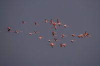 De flamingo's bij het Zwillbrocker Venn werden opgejaagd door de Zeearend in een grijze maar ook zonnige lucht waardoor de vleugels mooi werden aangelicht.