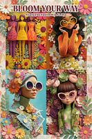 Flowerpower generatie fictieve vrouwen met verwijzing naar het seventies / eind zestig hippie tijdperk en Woodstock Festival interpretatie