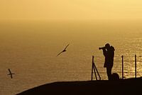 Fotograaf tijdens zonsondergang