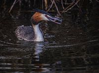 Gelukkig had de fuut er wat moeite mee , wat mij dan weer de gelegenheid geeft om meer foto's te maken.