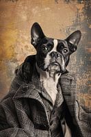 Deze prachtige Franse Bulldog, gekleed in een stijlvol tweed pak, straalt een tijdloze elegantie uit. Zijn zelfverzekerde blik en ontspannen houding getuigen van een verfijnde smaak en een liefde voor het goede leven. Het kunstwerk is een eerbetoon aan de klassieke portretten van weleer, maar met een moderne twist. De rijke texturen en subtiele kleurnuances brengen de persoonlijkheid van de hond tot leven en maken van hem een waar stijlicoon.