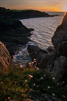 foto van natuurlijk kustgebied in Frankrijk dichtbij Cancale tijdens zonsondergang.
