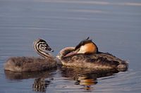 fuut met jong op het water