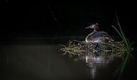 Deze fuut zat nog te broeden. ! jong was al uit het ei en kwam even "buiten" kijken...