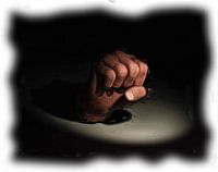 Gebalde vuist in de schijnwerper digitale olieverf schilderij