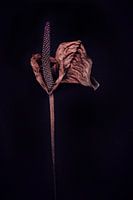 gedroogde zantedeschia. . Duotoon foto van gedroogde Zantedeschia . Compositie van vergane natuur op zwarte achtergrond