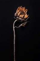 gedroogde zonnebloem op zwarte ondergrond. Bloemenkunst