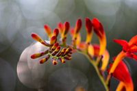 close up van een fel gekleurde zomerse boeketbloem, waar de focus op het puntje ligt, en met een donkere bokeh achtergrond