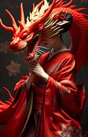 schilderachtige afbeelding van japanse fictieve Geisha, japanse iliustratieve kunst