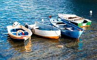 Pittoresk gekleurd tafereeltje van bootjes in het water in Puglia, Italie. Fijn zomergevoel dat in elk jaargetijde opgeroepen kan worden.