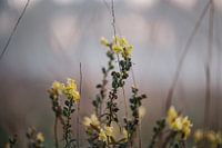 close up van Linaria supina, ofwel liggende leeuwenbek, met op de achtergrond de nevel van de vroege ochtend