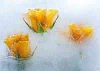 Gele rozen in ijs