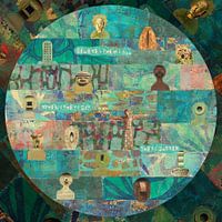 deze collage is er ook abstract, zonder afbeeldingen, van louter gelliprints, getiteld "teal symphony"