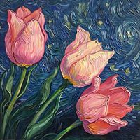 geschilderde rose tulpen van Hans Levendig (lev&dig fotografie)