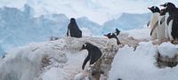 de ezelspinguïns moeten enkele meters naar beneden langs het steile ijs. Dit kan het een gevaarlijke onderneming zijn