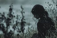 schilderachtig ai beeld waarin eenzaamheid de boventoon voert, een donkere periode tijdens depressie of rouwverwerking
