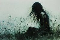 schilderachtig ai beeld waarin eenzaamheid de boventoon voert, een donkere periode tijdens depressie of rouwverwerking