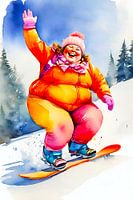 Koop dit digital art kunstwerk gezellige dame op een snowboard van De gezellige Dames als reproductie geprint op canvas, aluminium dibond, (ingelijste) fotoprint, behang en ArtFrame. Voor jou op maat geprint in Fine-Art kwaliteit.