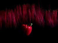 Rode paprika met in de achtergrond een rode peper die bewegend is gefotografeerd. Alles in camera, dit is geen photoshop werk. Ik heb een serie met dezelfde techniek gemaakt die samen leuke kleurcombinaties opleverden. Mooie beelden van gezond eten, die als serie een mooi geheel vormen in een restaurant of andere eetgelegenheid.