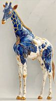 Onze unieke kunstwerken tonen een bonte stoet van dieren, vormgegeven in iconisch Delfts blauw en luxe goudaccenten, geplaatst tegen een stijlvolle witte marmeren achtergrond.