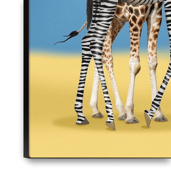 Koop dit digital art kunstwerk giraffe met zebra van Armin Mumper als reproductie op canvas, aluminium dibond, (ingelijste) fotoprint, behang en ArtFrame, op maat geprint in Fine-Art kwaliteit.