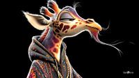 Met zijn eigenwijze blik, kleurrijke outfit en bijna menselijke houding lijkt deze giraffe zo uit een modeshow of street-art scène te zijn gestapt.