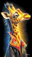Met zijn eigenwijze blik, kleurrijke outfit en bijna menselijke houding lijkt deze giraffe zo uit een modeshow of street-art scène te zijn gestapt.