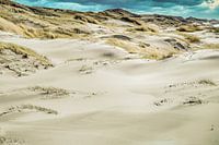 Een sfeervol natuurbeeld van glooiende duinen langs de zeereep van de Hollandse kust. Het losse zand van het strand met zicht op het duinlandschap