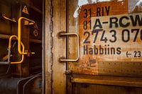 Schuifwandwagon Habbiins (goederenwagon) spoorwegen Oostenrijk met opschriften in spoorwegtaal..