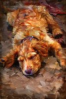 Dit prachtige schilderij vangt de serene rust van een slapende puppy in warme herfsttinten. De zachte penseelstreken en rijke kleuren creëren een gevoel van vrede en warmte, waardoor het de perfecte aanvulling is op elke kamer. Het is een tijdloos kunstwerk dat jarenlang vreugde en comfort zal brengen.