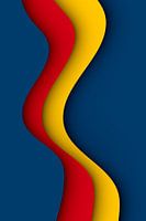 Abstracte afbeelding met gekleurde golven in blauw, rood en geel met dieptewerking.