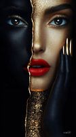 Ontdek onze exclusieve collectie schilderijen van vrouwen in goud, zwart en rood, gemaakt met kunstmatige intelligentie.
