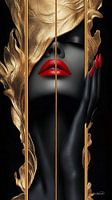 Ontdek onze exclusieve collectie schilderijen van vrouwen in goud, zwart en rood, gemaakt met kunstmatige intelligentie.