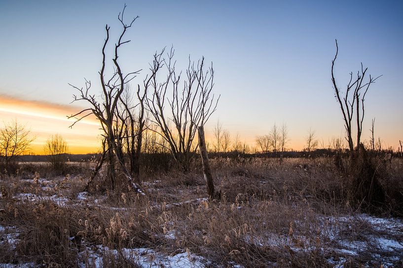 deze heb ik op een koude ochtend gemaakt .het is een moerassig stuk natuur waar nog enkele dorre bomen op staan die dan weer een speciaal gevoel creeren .